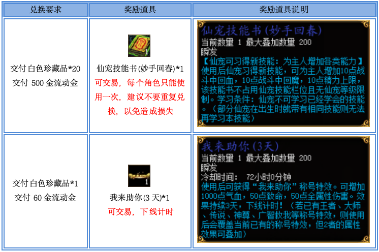 活动期间,可在NPC“藏宝阁阁主”处兑换以下道具: