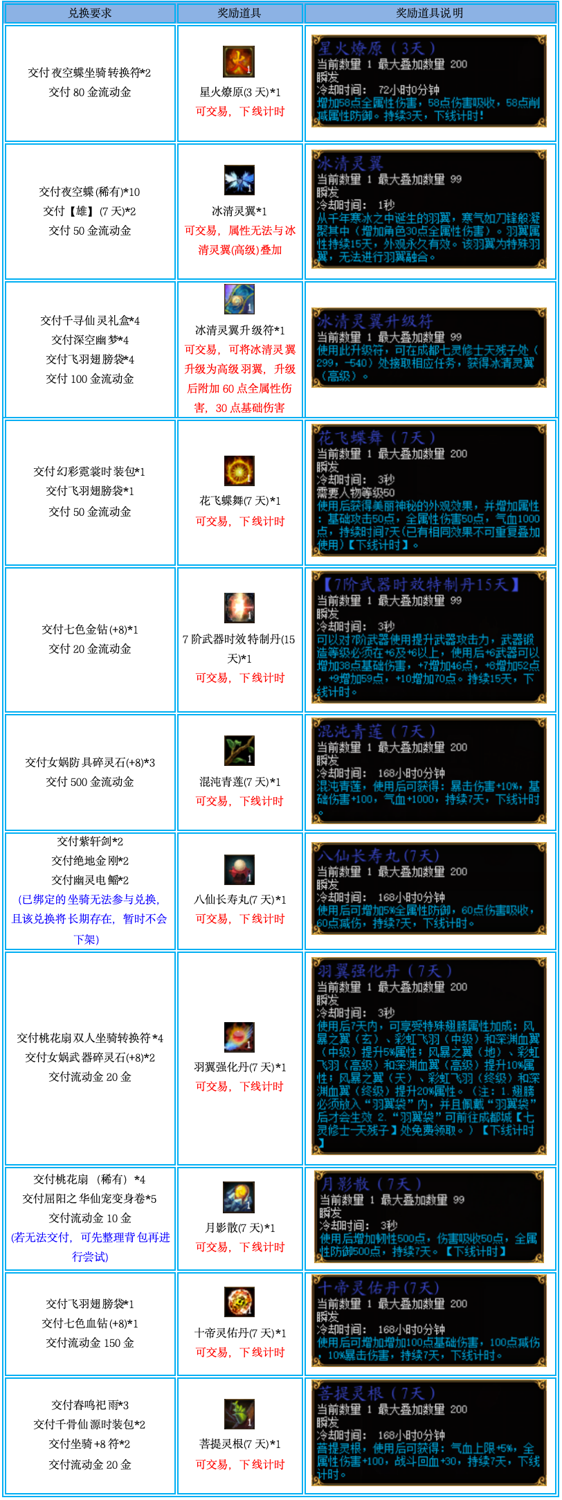 7、活动结束后所有道具将会下架,请有需要的玩家抓紧时间兑换!